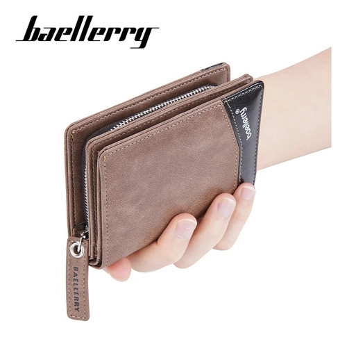 Billetera Baellerry Masculina Símil Cuero Práctica Vertical Marrón Claro Liso