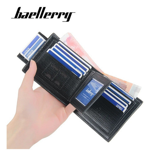 Billetera Con Porta Tarjetas Extraíble Baellerry Caballero Negro Texturado