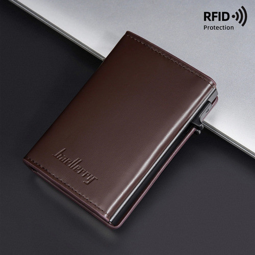 Billetera Tarjetero Baellerry Antirrobo Rfid Compacto Cierre Liso Coffee