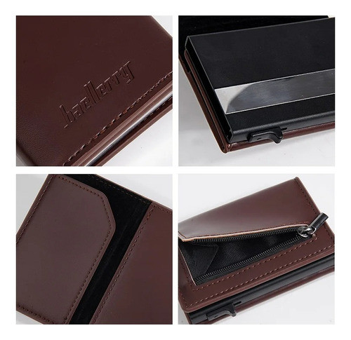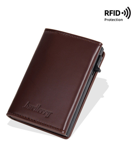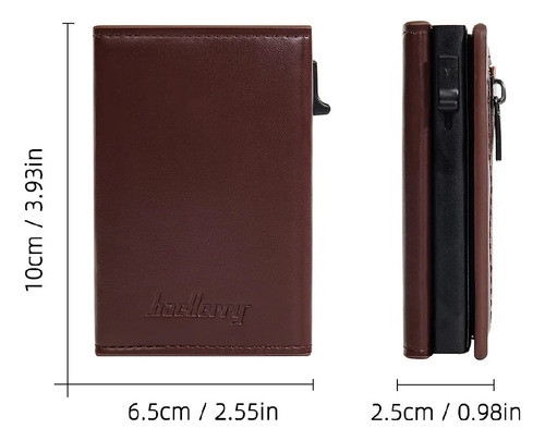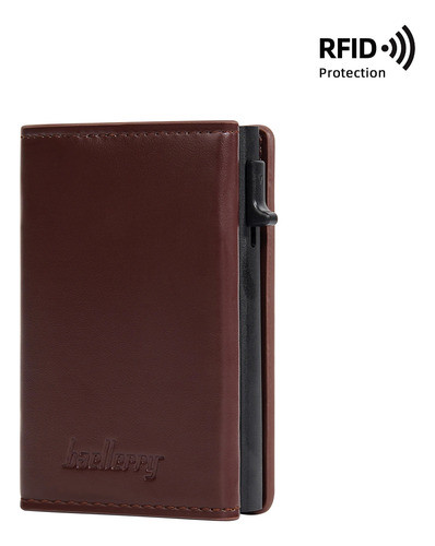Billetera Tarjetero Baellerry Antirrobo Rfid Compacto Cierre Liso Marrón