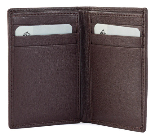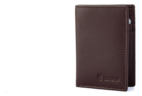 Billetera Tarjetero Doble De Cuero Unisex Hombre Terrano Liso Marrón