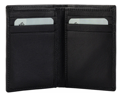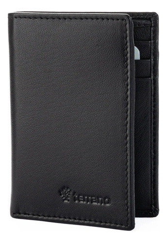 Billetera Tarjetero Doble De Cuero Unisex Hombre Terrano Liso Negro