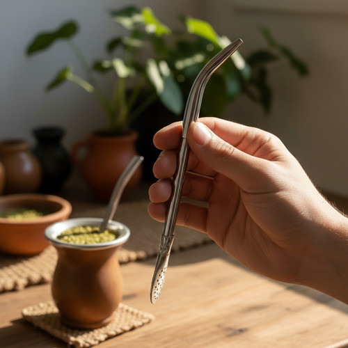 Bombilla Alpaca Corta Chica 16 Cm Pico Loro/recta Premium