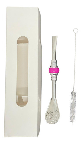 Bombilla Corta Piedra Acero Inox. Moderna Elegante Para Mate Fucsia