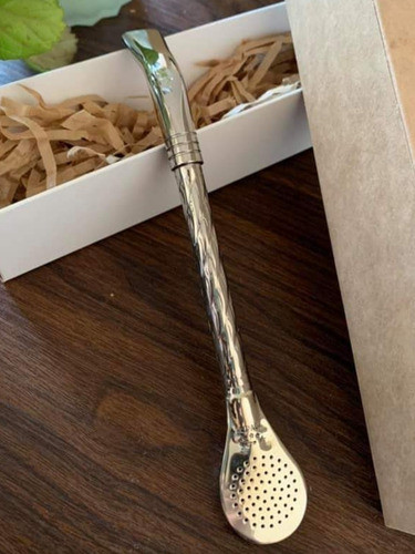 Bombillon Alpaca Cincelada Curva Pico Loro + Limpia Bombilla