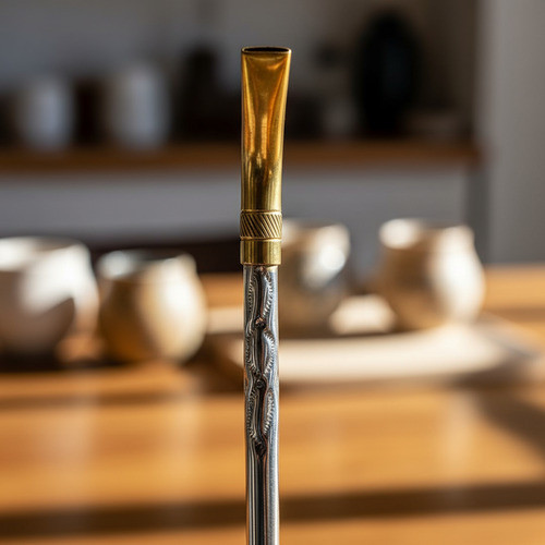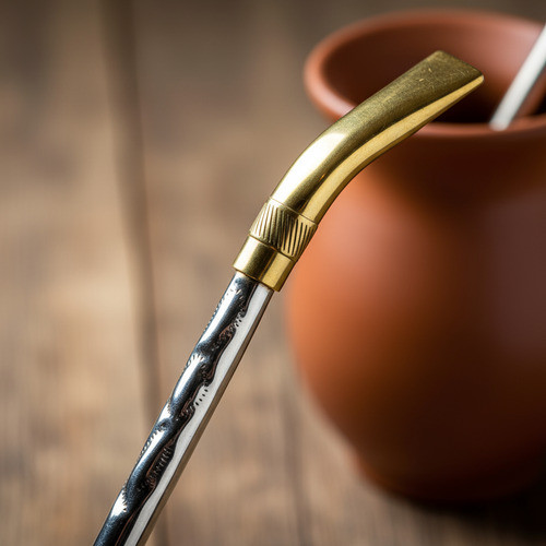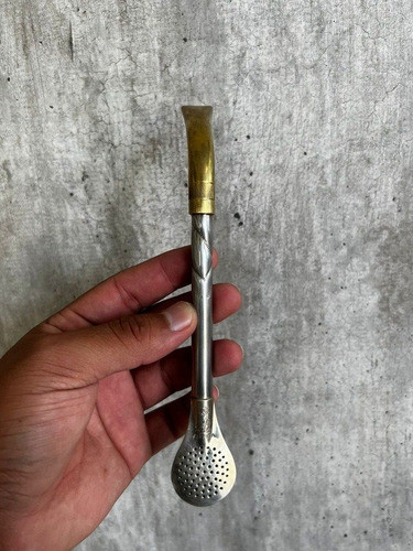 Bombillon Alpaca Pico Loro Bronce 20cm + Limpia Bombilla
