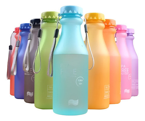 Botella Plástica 550ml Reutilizable Bpa Free- Correa Colores