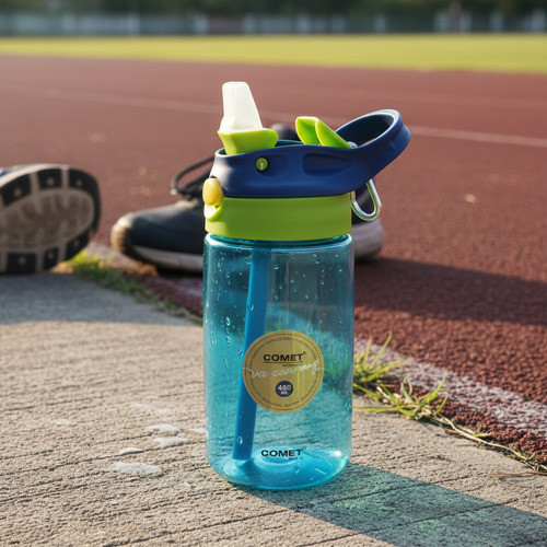 Botella Plastica Infantil Pico Retractil C/asa Escolar Azul