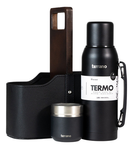 Combo Kit Termo 1lt Base Silicona Mate Matera Terrano Set Negro Folkie Termo Base Silicona