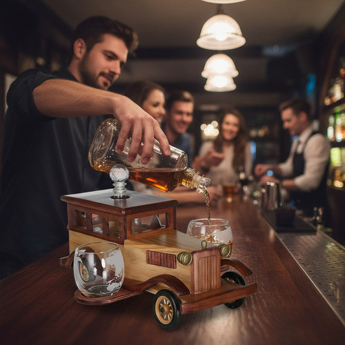 Decantador De Whisky Licor Botella Y 2 Vasos Auto Cachila Único
