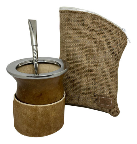 Kit Mate Calabaza Posa Mate Bombillon 18cm Alpaca + Yerbera Mate Con Vuelo Bombillon Recto Cincelado