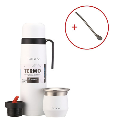 Kit Mate Tapa Silicona Termo Terrano Acero Inox + Bombilla Blanco