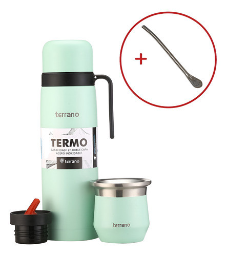 Kit Mate Tapa Silicona Termo Terrano Acero Inox + Bombilla Verde Agua