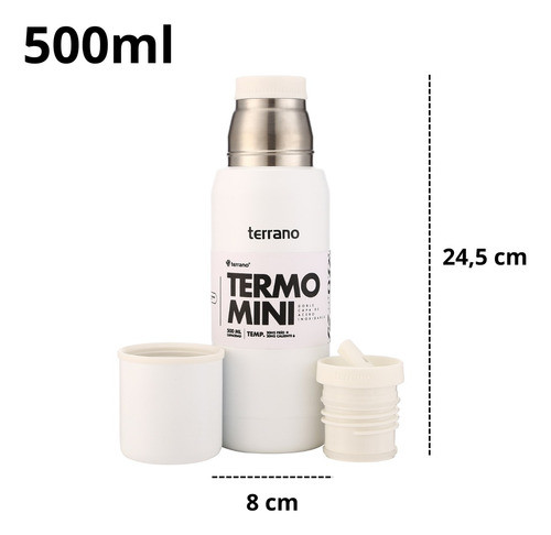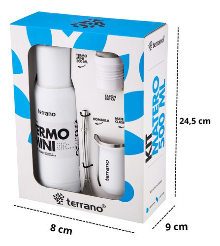 Kit Matero 500ml Terrano X3 Mini Termo Mate Chico Y Bombilla Blanco