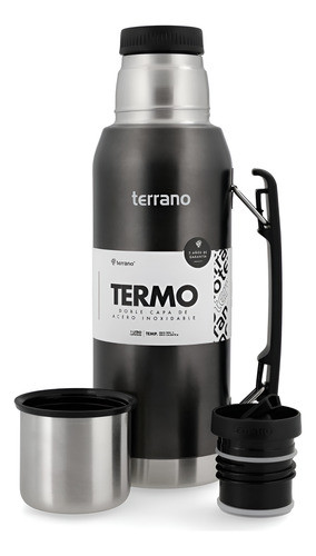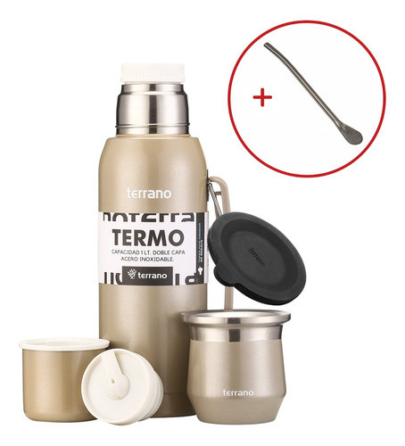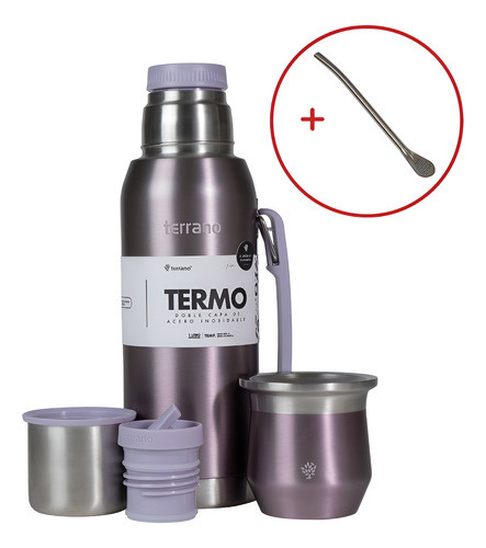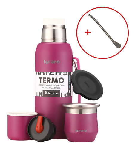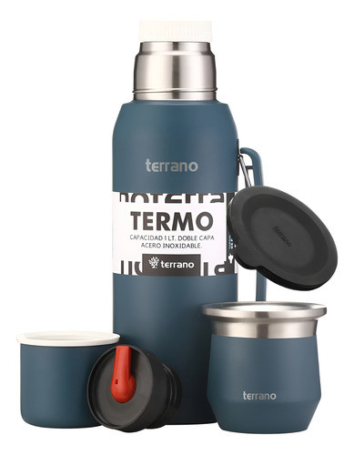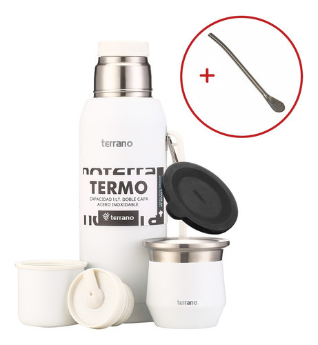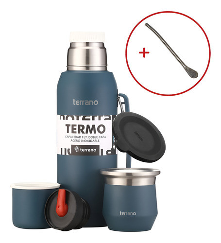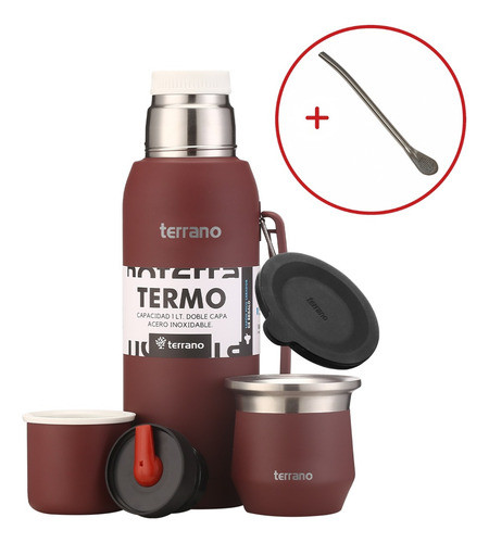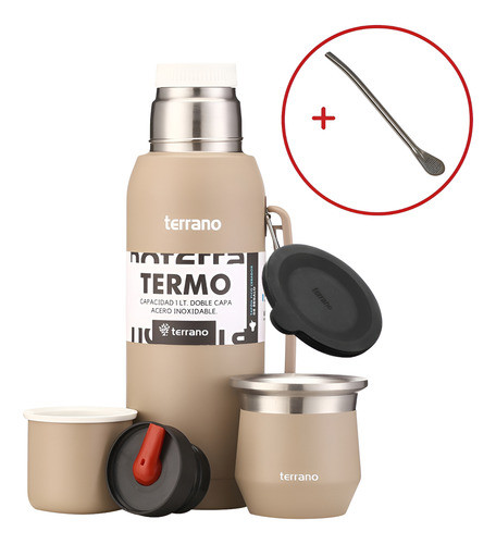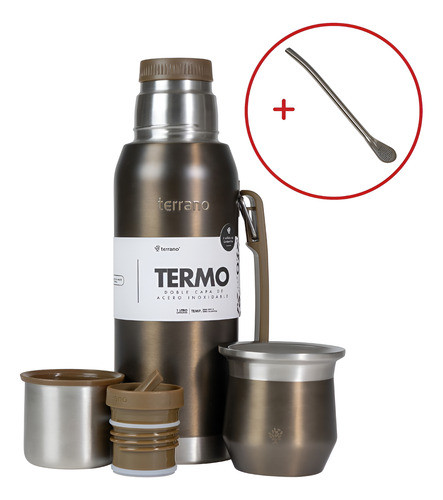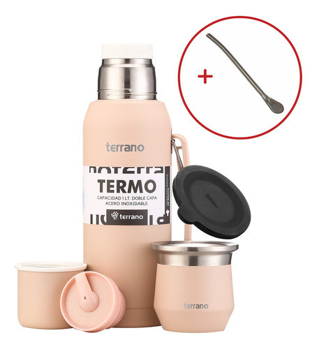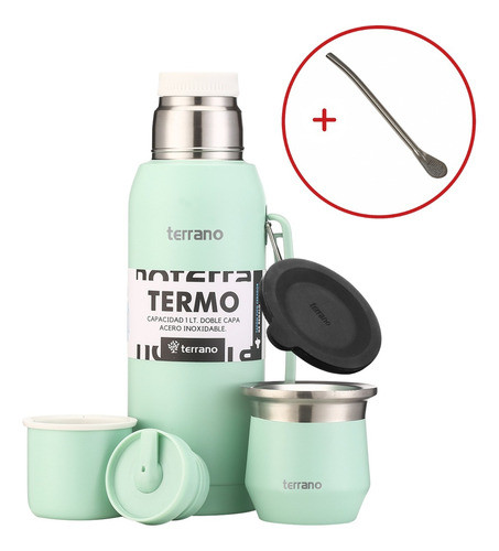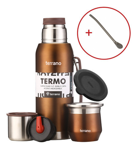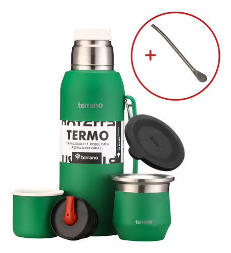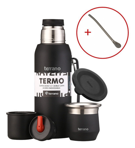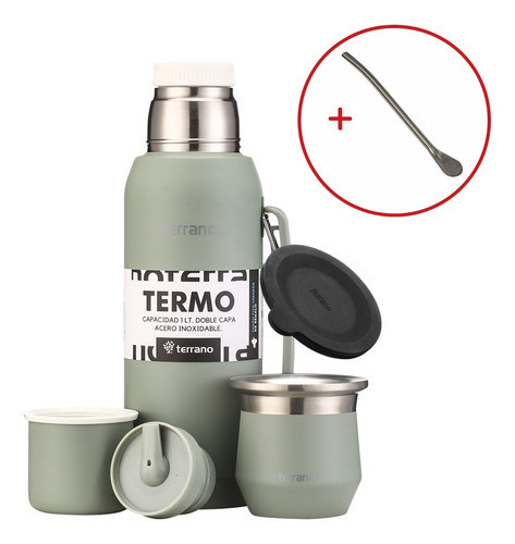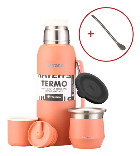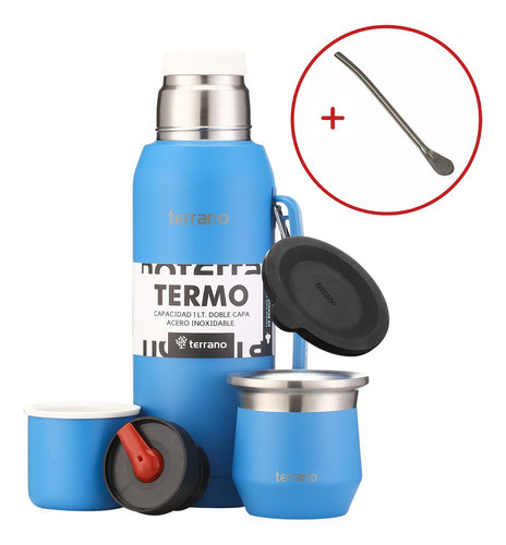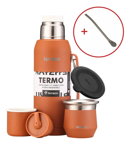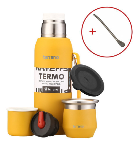 Kit Matero Terrano Termo 1lt Mate Tapa Silicona + Bombilla