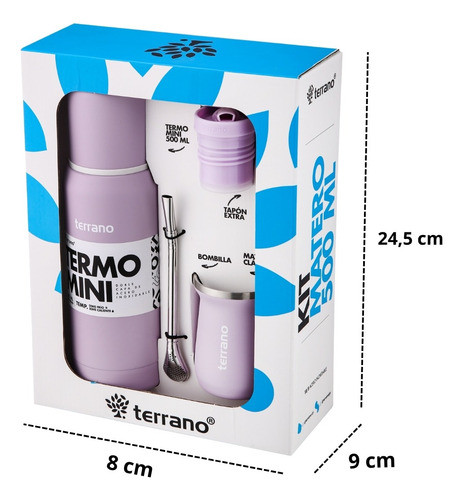 Kit Set Matero Terrano X3 Mini Termo Mate Chico Y Bombilla Lila