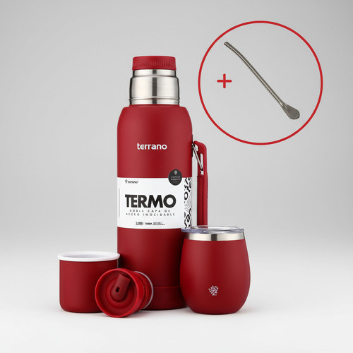 Kit Termo 1l Terrano C/base Silicona Mate Camionero Bombilla Rojo Mate Con Tapa