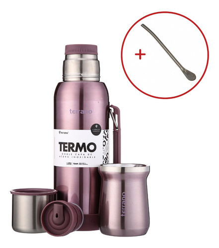 Kit Termo 1lt Terrano C/base Silicona Mate Acero + Bombilla Lila Metalizdo Mate Tradicional