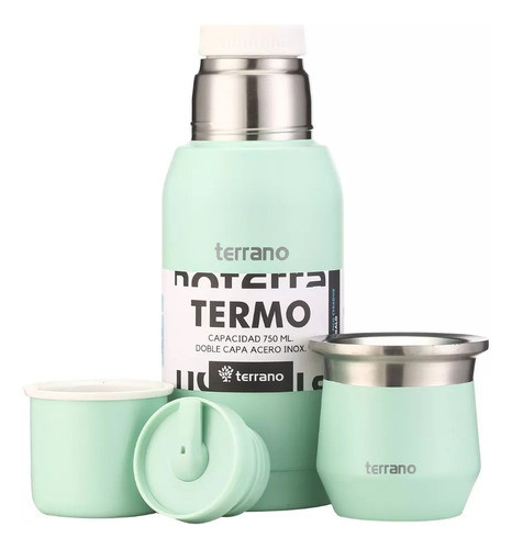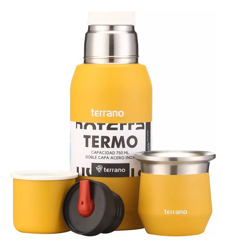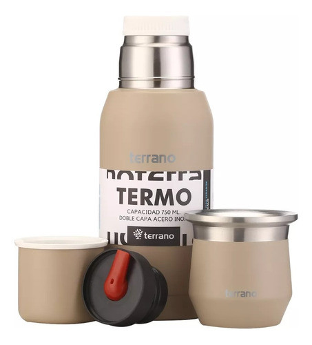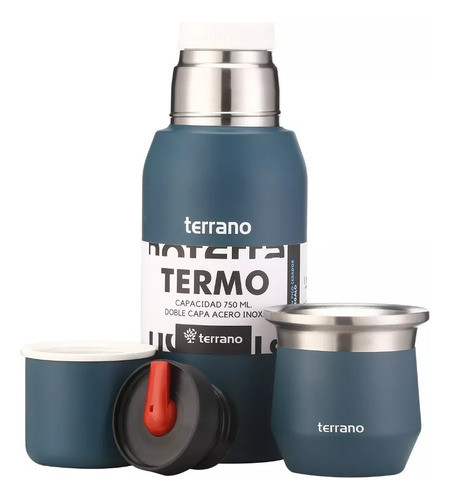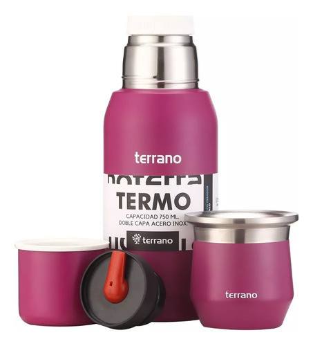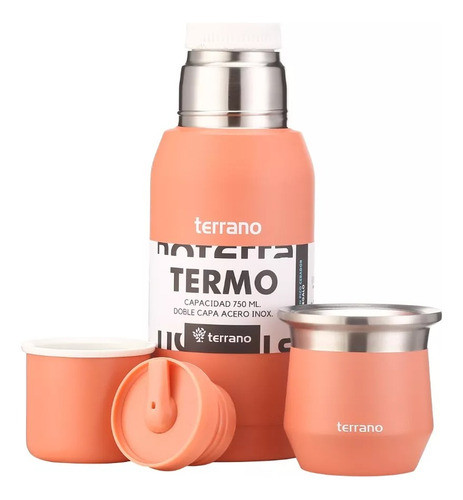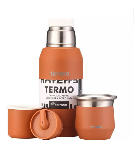 Kit Termo 750ml Terrano Mate Acero Tapa Silicona + Bombilla