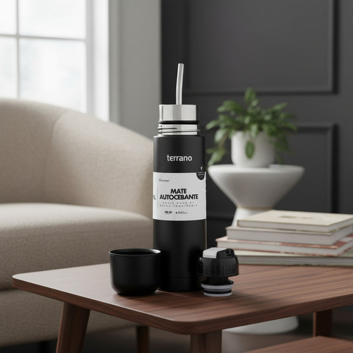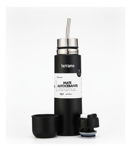 Mate Autocebante - Termo Acero Inox 500 Ml Terrano - Negro - Autocebante