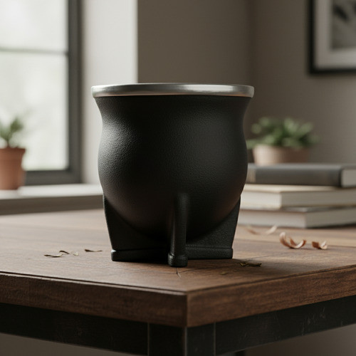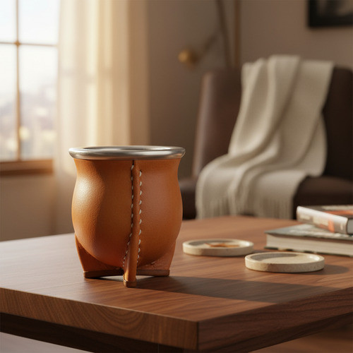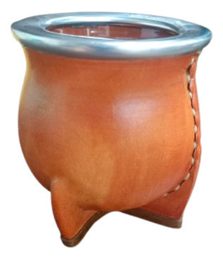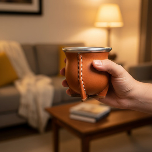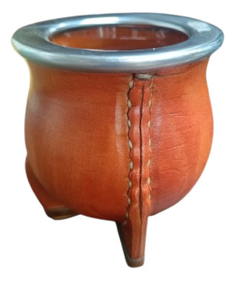 Mate Ceramica Camionero Chico Cuero Boquilla Acero Inox