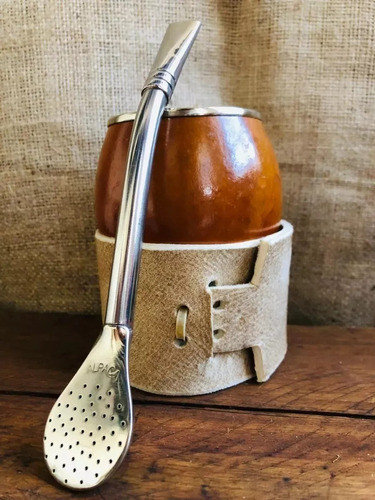 Mate Porongo C/boq. Inox, Posa Mate Y Bombillón Alpaca Negro