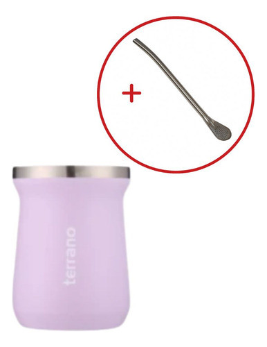 Mate Terrano Chico 160ml Acero Inox Camionero + Bombilla Lila