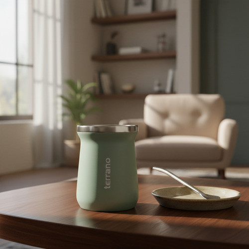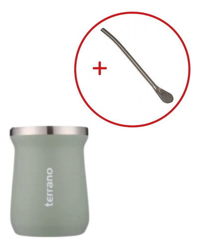 Mate Terrano Chico 160ml Acero Inox Camionero + Bombilla Oliva
