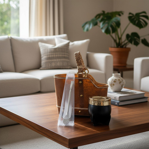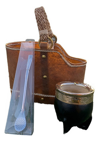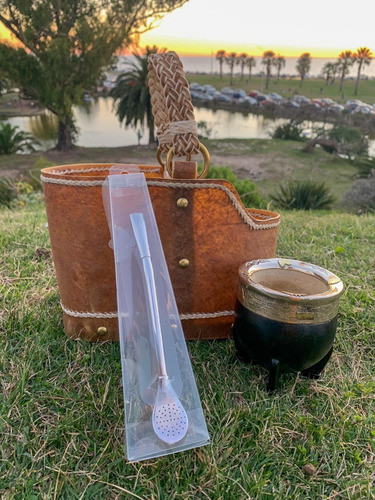 Matera Cuero Crudo Mate Imperial Alpaca Bombilla Plata 925 Oscuro
