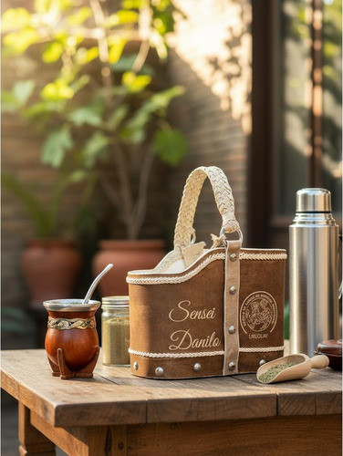 Matera Cuero Crudo Trenzada Con Grabado A Laser Cuero