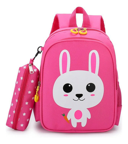 Mochila Diseño Escolar + Estuche Infantil Niño Niña Jardin Conejo 1 Rosa Chicle