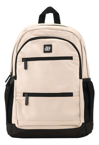 Mochila Grande Terrano Doble Cierre Premium Ehogar Color Beige Diseño De La Tela Liso