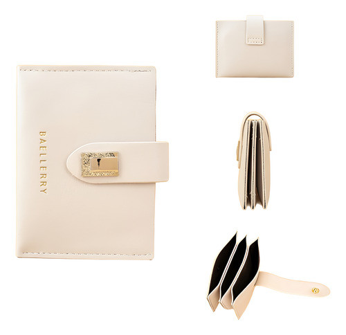 Monedero Broche Porta Tarjetas Dama Fino Elegante Compacto Liso Beige