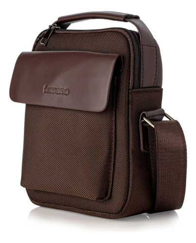 Morral Chico Con Solapa Terrano C/ Correa Unisex Caballero Marrón Lisa Níquel Na