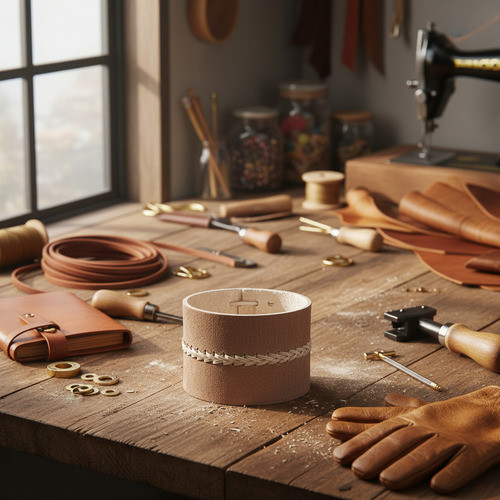 Posa Mate Cuero Crudo Cocido Ajustable Trenzado Al Medio