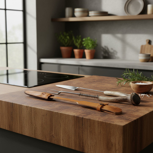 Set Cuchillo Tenedor Expulsor Vaina Artesanal Parrilla Asado Genérico