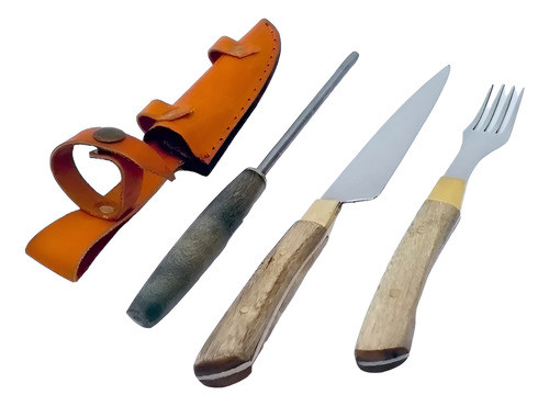 Set Cuchillo Tenedor Vaina Chaira Artesanal Parrilla Acero Genérico