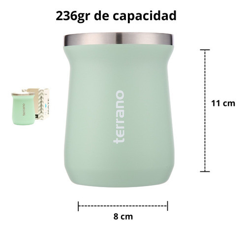 Set Mate Termo 1lt Acero Colores Terrano Doble Capa Bombilla Verde Agua