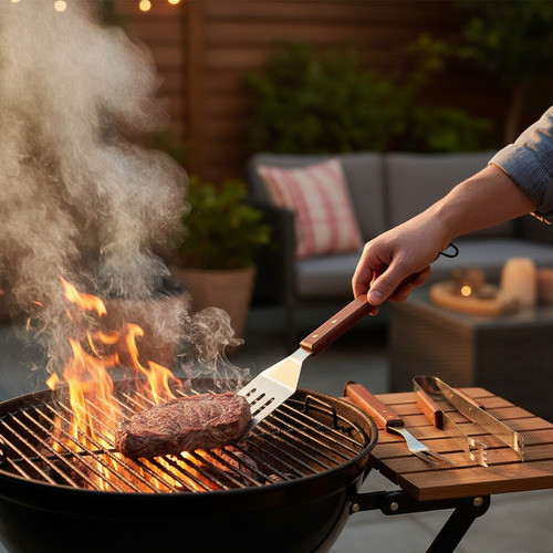 Set Parrilla 4 Piezas Cuchillo Tenedor Pinza Espatula