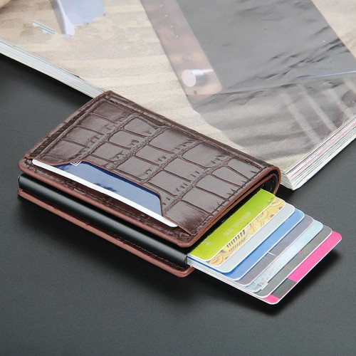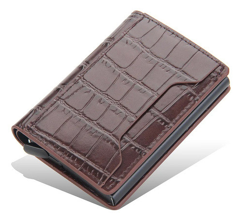 Tarjetero Croco Antirrobo Elegante Compacto Billetera Rfid Café Croco