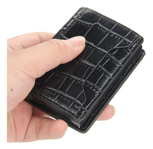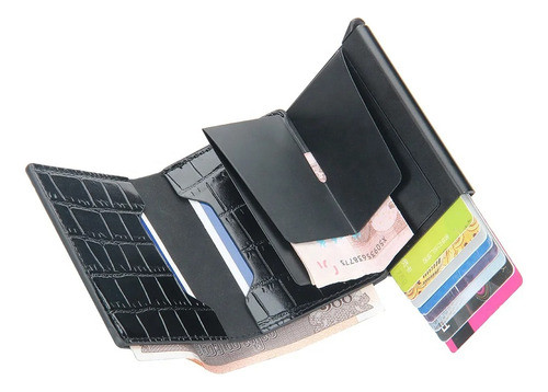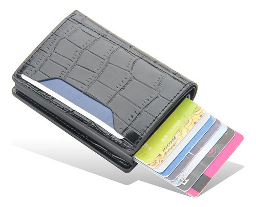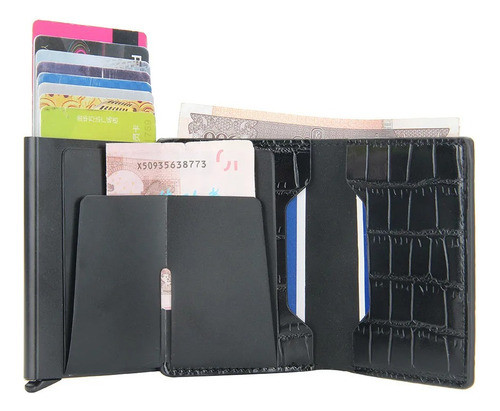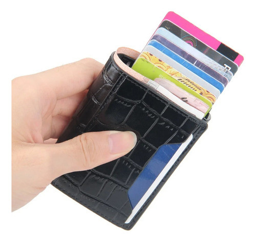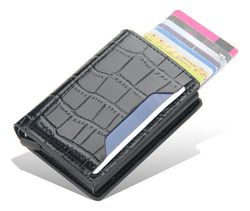 Tarjetero Croco Antirrobo Elegante Compacto Billetera Rfid Negro Croco