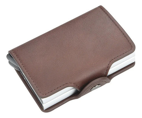 Tarjetero Rfid Metálico Doble Compacto Antirrobo Elegante Liso Coffee