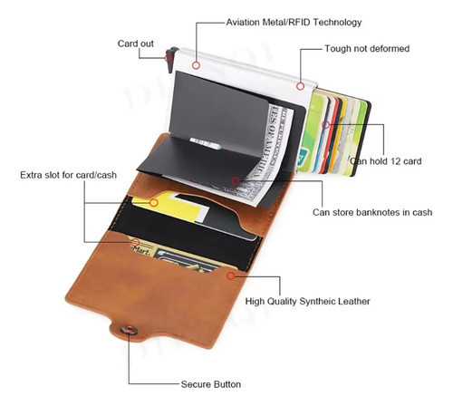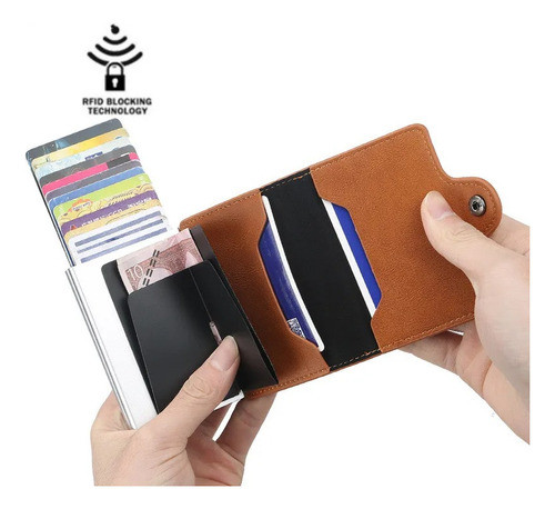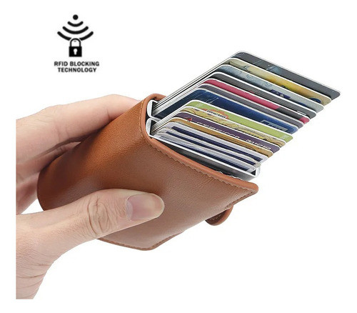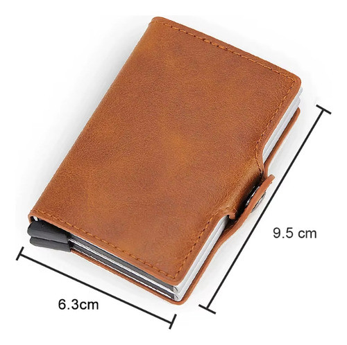 Tarjetero Rfid Metálico Doble Compacto Antirrobo Elegante Liso Marrón