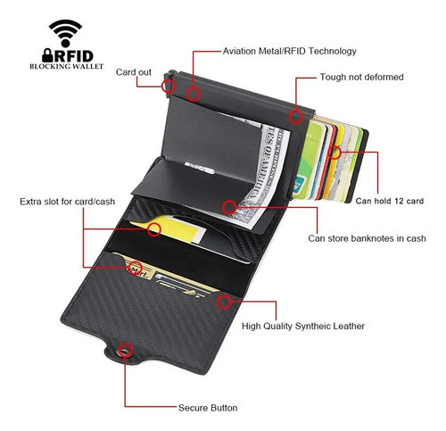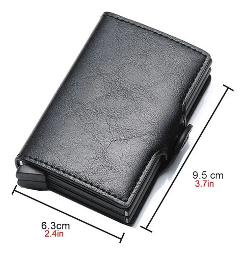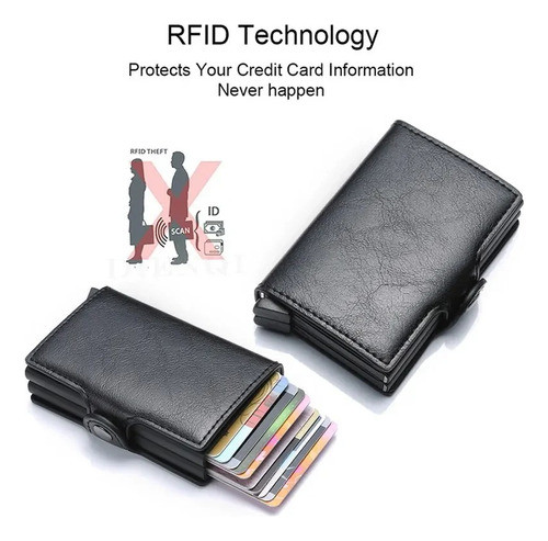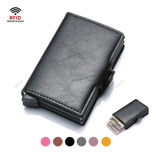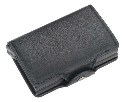 Tarjetero Rfid Metálico Doble Compacto Antirrobo Elegante Liso Negro