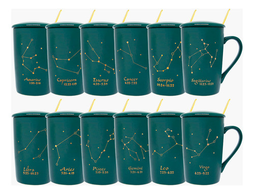Tazas Signo Zodiaco 12 Signos C/tapa Cuchara Caja Regalo