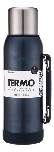 Termo 1lt Terrano Premium Base Silicona Antigolpes Azul Metalizado