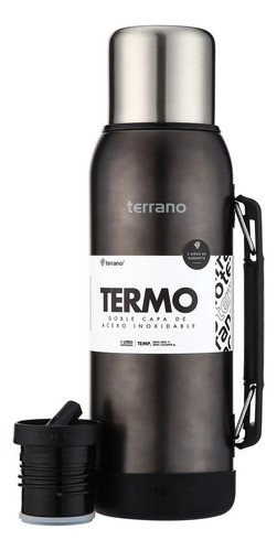 Termo 1lt Terrano Premium Base Silicona Antigolpes Negro Metalizado