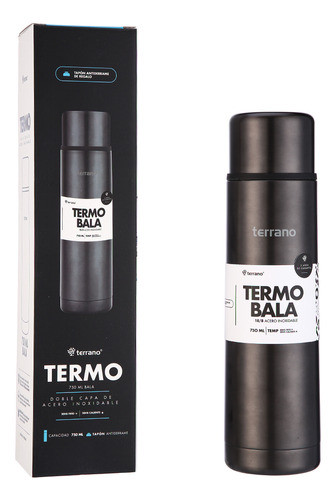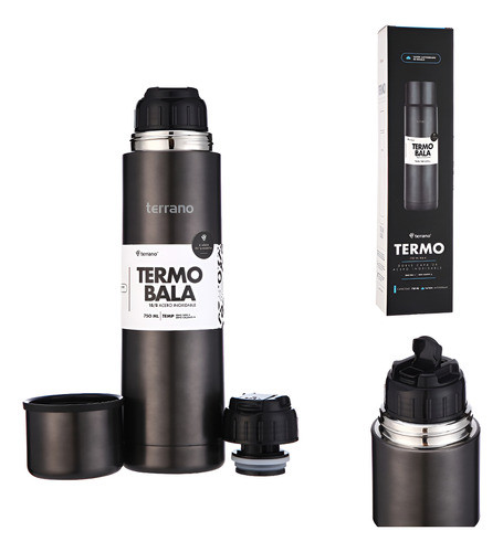Termo 750ml Terrano Acero Inox Pico Cebador + Tapon Repuesto Negro Metalizado