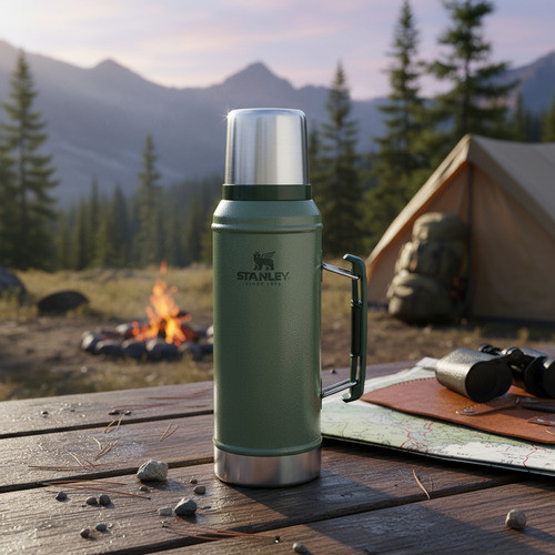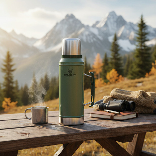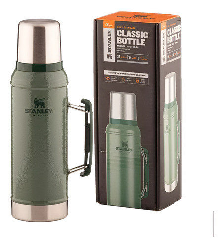 Termo Stanley Clásico 1 It Acero Inox Premium Tapon Cebador Verde Oscuro