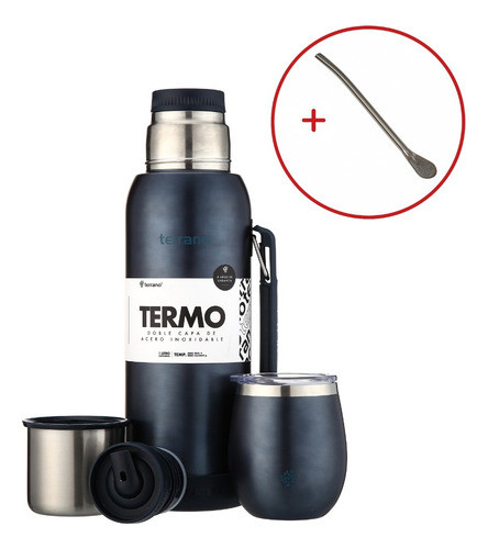 Termo Terrano 1lt Base Silicona Anticaida + Mate + Bombilla Azul Metalizado